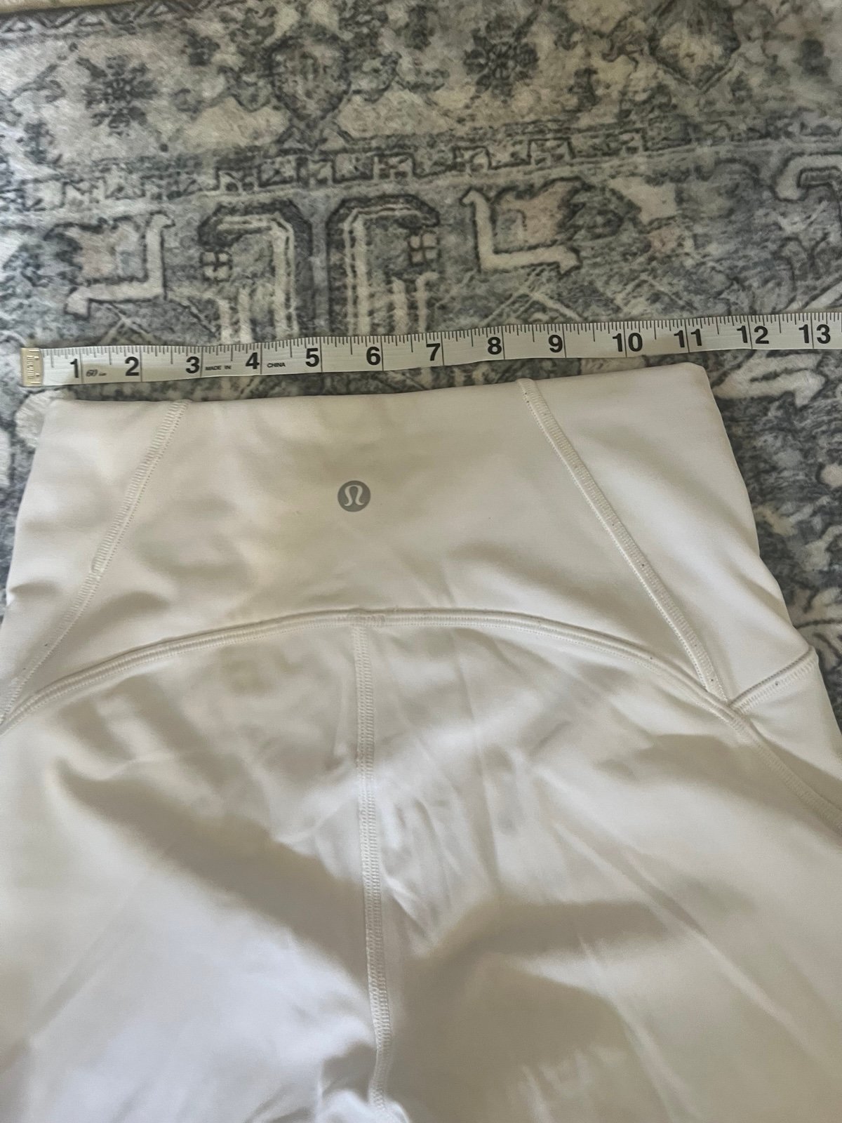 White Lulu leggings, with mesh detailing along each side of leg from knee to ankle. Sleek and comfortable leggings. Perfect for yoga or casual wear. Extremely versatile!!High-quality fabric.