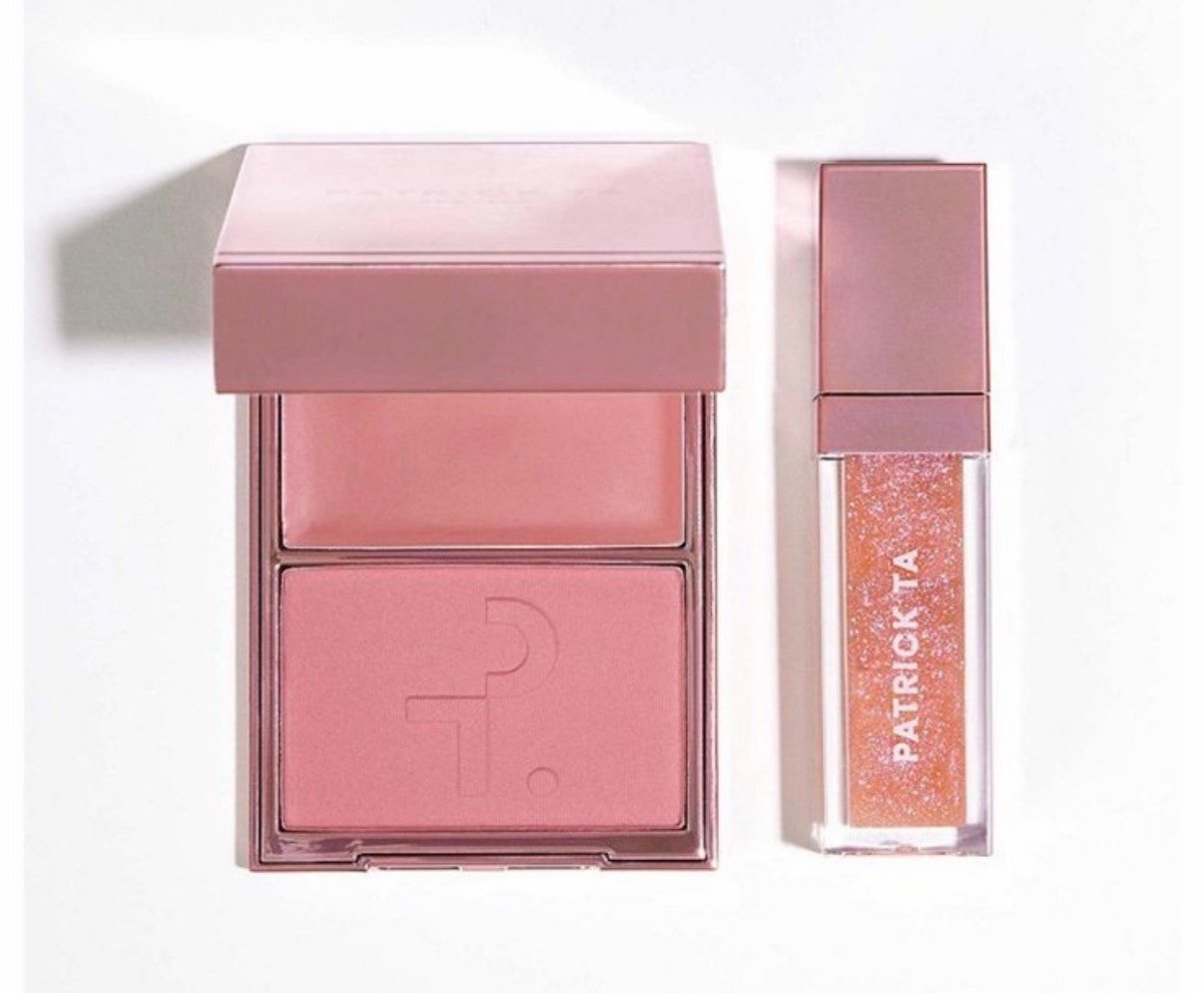 A perfect gift set featuring a new shade of Patrick's viral crème and powder blush duo paired with a new and non-plumping shimmery lip gloss formula.