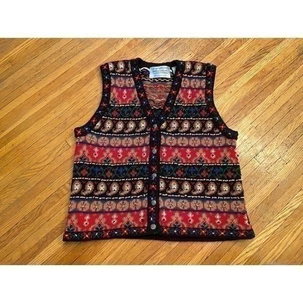 Signatures by Northern Isles Petites Vintage Hand Embroidered Sweater Vest. Sleeveless. Button down. 55% ramie, 45% cotton. Armpit to armpit 19 1/2 inches. Length 21 1/2 inches. Size Petite Medium. Excellent condition.