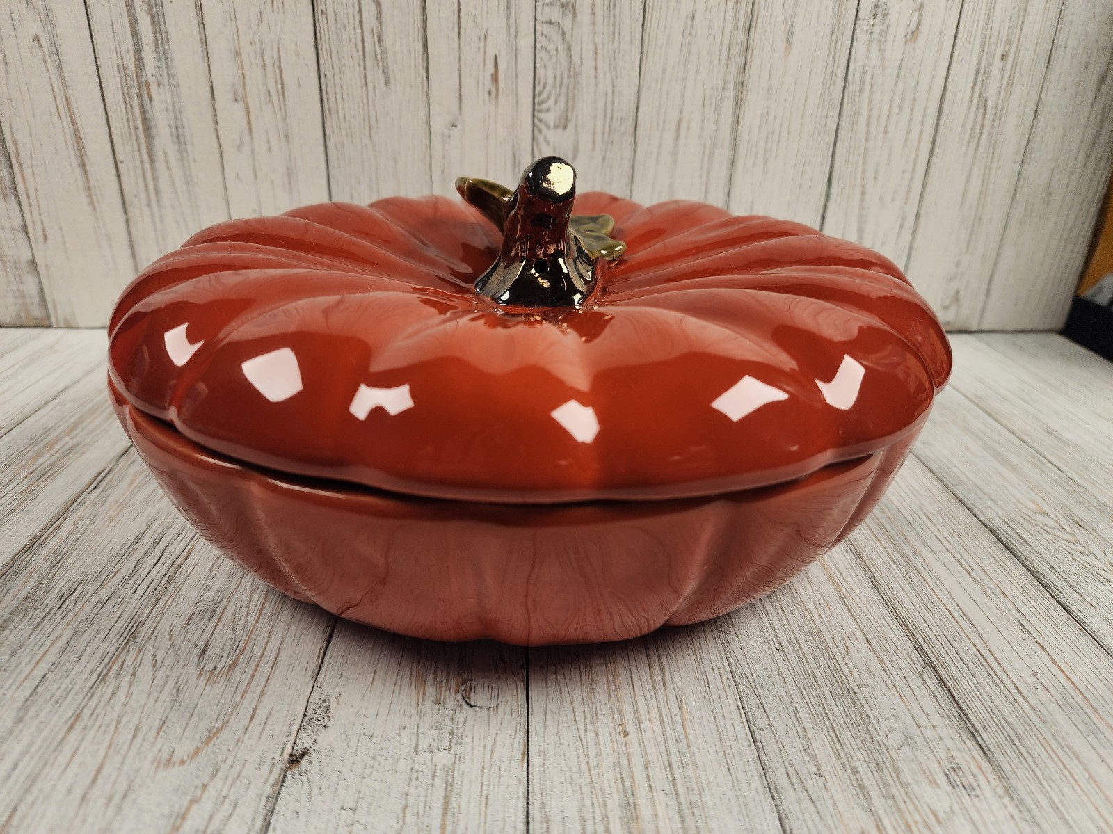 Pumkin Ceramic Pie Dish And Lid JCPenney HOME DESIGN NWOT heat Dish Rare Find