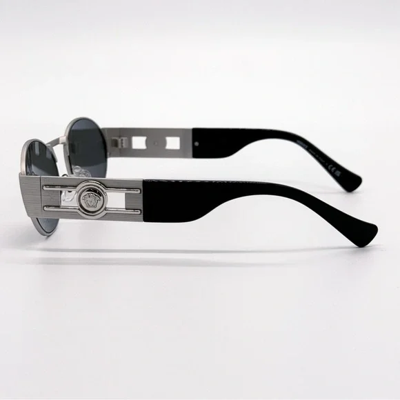 100% NEW AUTHENTIC EYEWEAR WITH FULL PACKAGE Brand: VERSACE Model: VERSACE VE2264 1513/87Condition: New with full package Frame color: SilverLens color: Grey Frame material: Metal Lens socket: 56 mmBringe width: 18 mmTemple length: 140Made in Italy Item included: authentic eyewear, certificate of authentic, cleaning cloth, case, box.