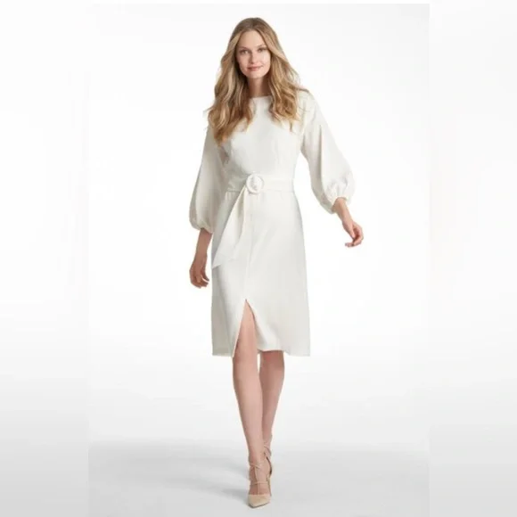 NWT - Sachin & Babi - Annie DressSize: 4Color: WhiteStyle: #F221D49-103MSRP: $450📌 NEW GARMENT WITH TAGSDESCRIPTION / DETAILSIf ever there was a dress that could go anywhere it is the Annie. The clean lines of this chic sheath are punctuated by an elegant and understated bracelet sleeve ruched at the cuff to create a subtle volume, center front slit, and self-sash. The lightweight crepe drapes elegantly and is considered an ideal 3 season fabric. - 42" Long, Hem falls below the knee- Lightweight Crepe / 100% Polyester- Round neckline- Puffed bracelet sleeves; ruched cuffs- Dropped shoulders- Self-tie belt- Sheath silhouette- Concealed Back Zipper- Imported📌 All offers considered. 99% of closet items are new with tags - prices are fair. You won't find items that will disappoint you here.🙂 📌 Are you new to POSHMARK? If so, use my code - "kimberlyschi302" for at least $10 off of your first order.💰 📌 BUNDLE AND SAVE! Buy 3 or more items, get additional 10% off.🛒 Tags: Bachelorette, birthday, black tie, bridal, bride, bridesmaid, celebrity, cocktail, cruise, date night, designer, discount, dress elegant, engagement, event, evening, fairytale, fashion, formal, fundraiser, gala, guest, holiday, homecoming, LBD, luxury, mother of bride, mother of groom, pageant, party, photo shoot, princess, prom, quinceanera, red carpet, rehearsal, sexy, shower, showstopper, special occasion, soirée, stunning, Sunday, Valentine, wedding..File: 27 / 65