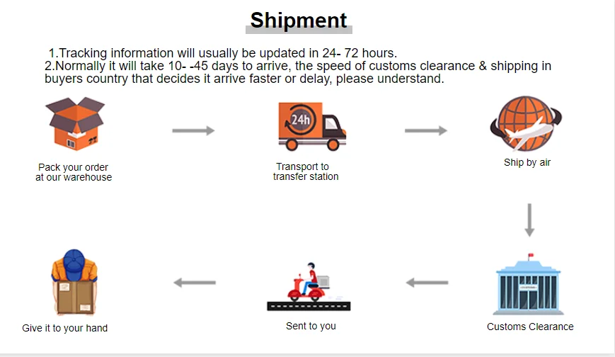 3) Your item will be sent out after the website verified the payment in 24 hours. The handing date is 5-7 working days.