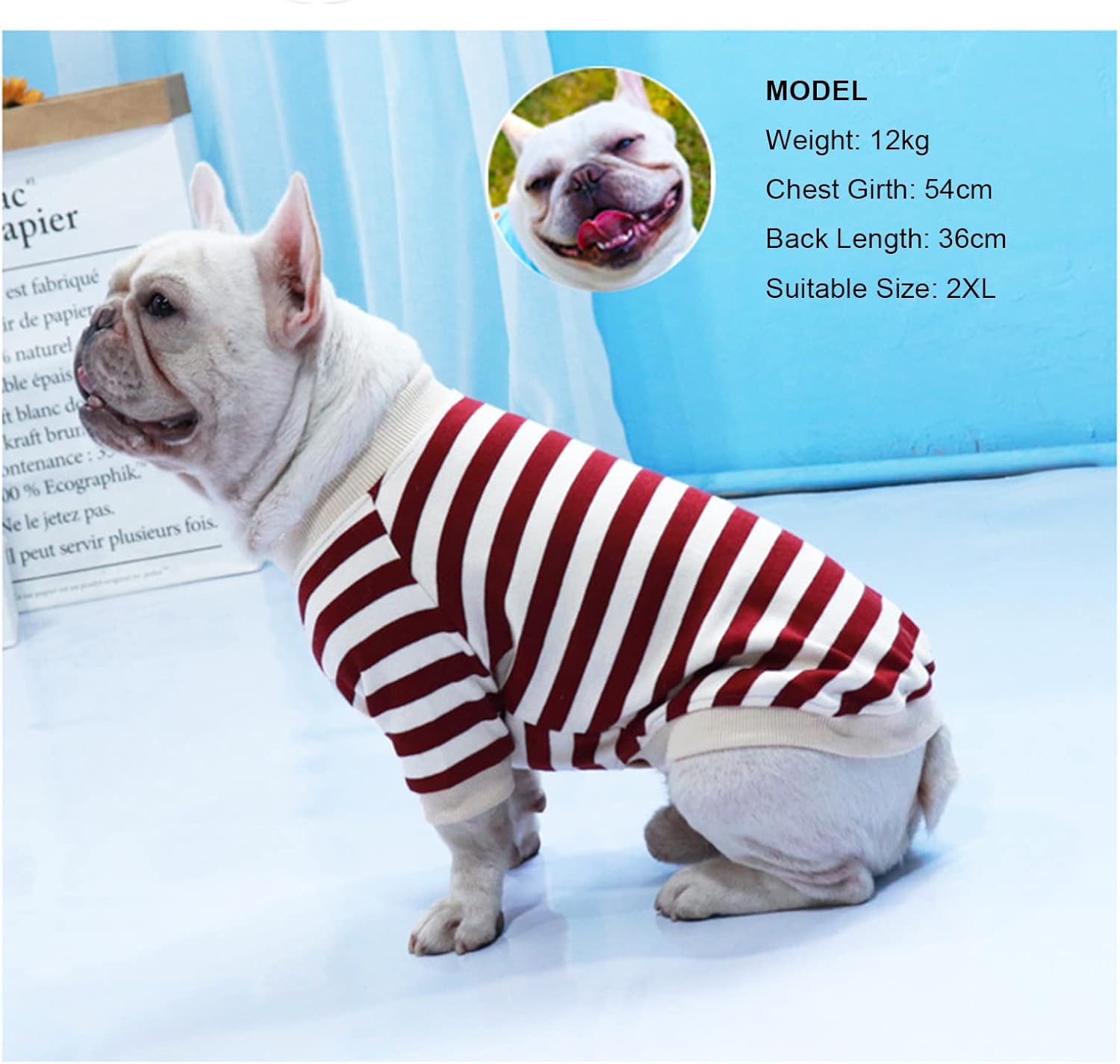 FEATURES1. The fashion strip design could make your dog easy to stand out and attractive.2. Elastic fabric, not easy to tear up.3. Soft, comfortable lining, keep warm for your dogs.WASHABLEMachine washeddried at low temperature or air-driedMEASUREMENT1. When the dog stands forward2. Use a soft ruler to measure a circle around the back of the dog's front leg, then you get the Chest Girth of your dog.3. In order to make your dog wear more comfortable, we recommend that you add 3-5cm/1.4-2.0" to the dog’s Chest Girth then choose sizes according to our Size Chart.PARAMETER:Product color: Blue, RedProduct material: CottonDog Range: Small medium dogs like Chihuahua, Bichon Frise,Teddy, Schnauzer corgi etc.Size: S, M, L, XLPACKAGEDog hoodie * 1⚠️NOTICEManual measurements, please allow 1-3cm/0.4-1.2" error.