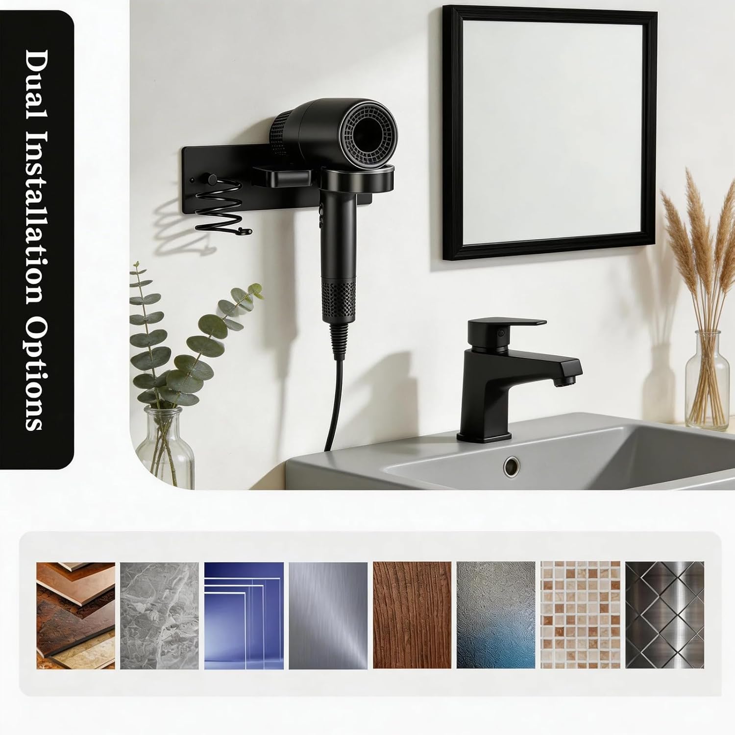 Declutter your bathroom countertop and keep your hair styling tools within easy reach with our Wall Mounted Hair Tool Organizer—the perfect solution for a tidy, functional bathroom! This hair dryer holder features a dedicated slot for your hair dryer, plus additional storage for curling irons, straighteners, and other styling tools. The sturdy, heat-resistant construction ensures long-lasting use, while the no-drill installation makes it easy to mount on any wall without damaging your bathroom tiles or walls. With its sleek, modern design, this hair tool organizer not only keeps your space tidy but also adds a touch of style to your bathroom decor. Whether you’re a busy professional, a student, or a parent, this wall mounted hair tool holder is the perfect way to keep your styling tools organized and accessible.