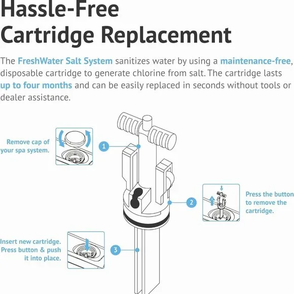 【Applicable】Compatible with Hot Springs Highlife Series, Hot Spring Limelight Series, Caldera Utopia Series and Caldera Paradise Series produced in 2019 or later.【Notes !】 Freshwater salt system filters are not compatible with Hot Spring ACE salt water systems or other pool or hot tub salt systems.【Service life】The specific usage time depends on the frequency of use and environment, but is usually four months. Please remember to check and replace the filter element in time so that you and your family can better enjoy your spa time【Reasonable price】Get the best product in the same price range at a reasonable price.【Easy to install】It can be installed in a few minutes without any tools.